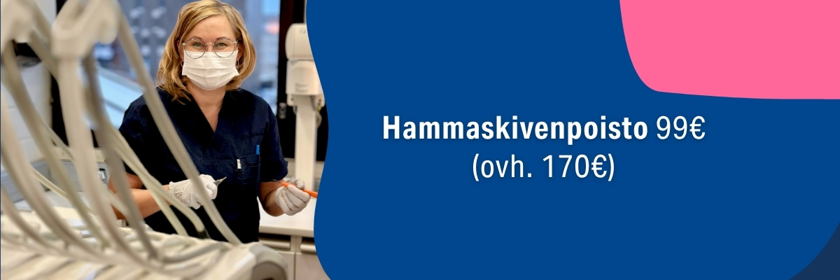 Tarjoamme hammaskivenpoiston etuhintaan 99 € (normaalihinta 170 €).